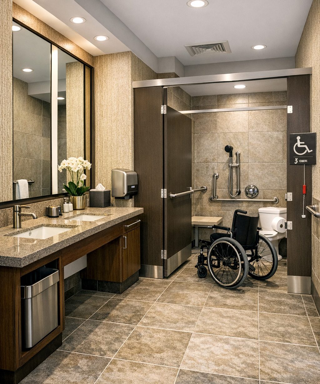 Our team works closely with property owners, managers, and project teams to ensure restroom upgrades align with accessibility requirements while supporting daily operations.