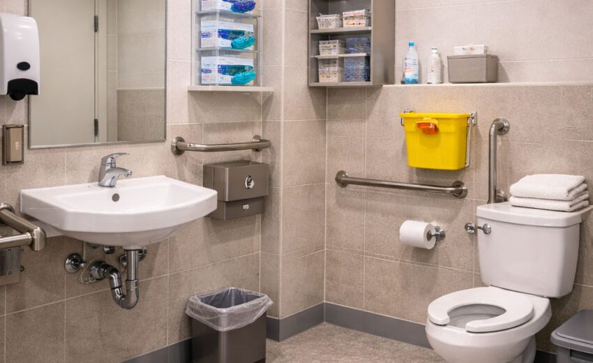 Healthcare restroom solutions are designed to support patient safety, hygiene, and accessibility, with materials and layouts tailored to medical and care environments.