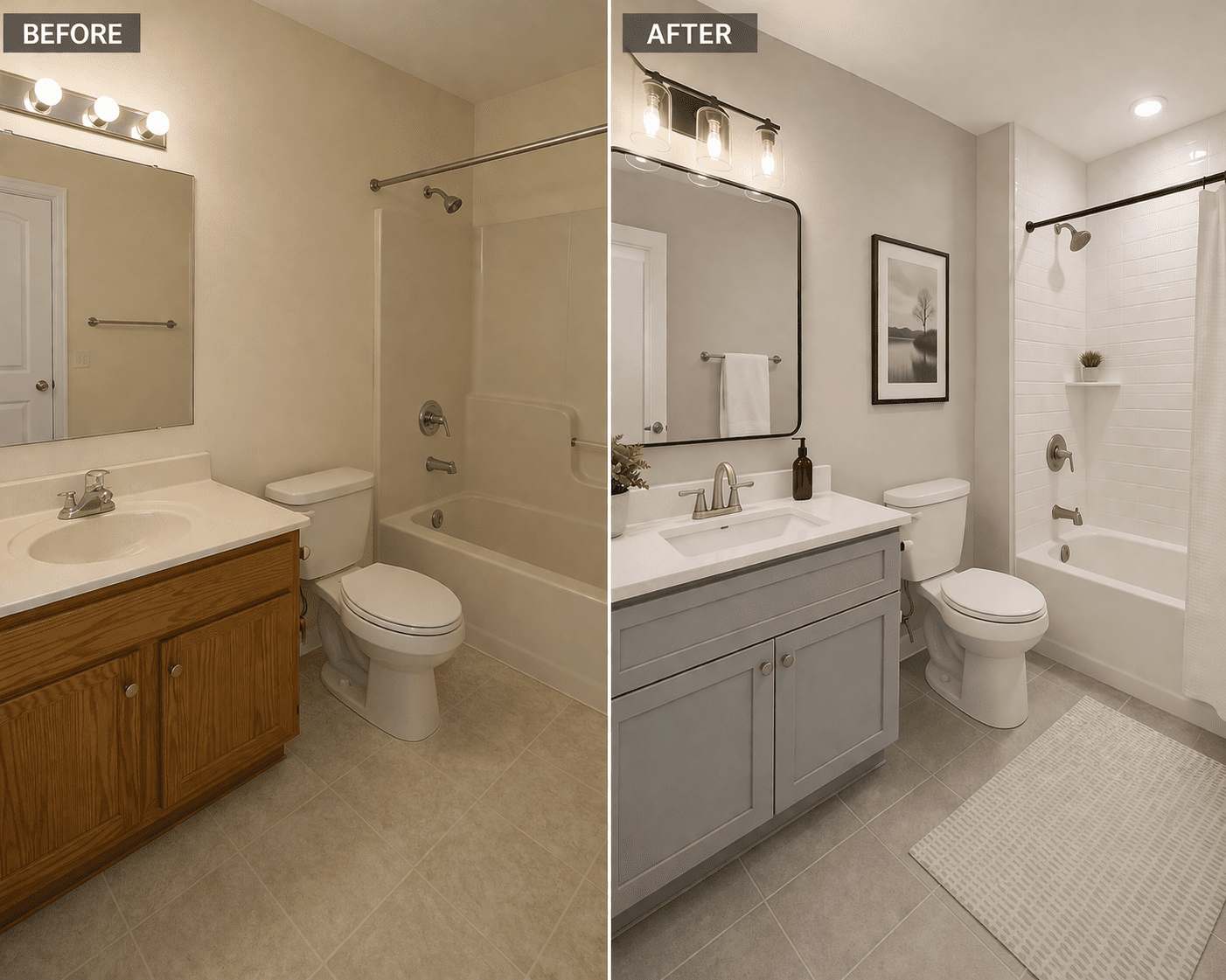 Our Standard bathroom remodels provide a noticeable upgrade with improved materials, enhanced finishes, and modern design features that balance style, comfort, and budget.